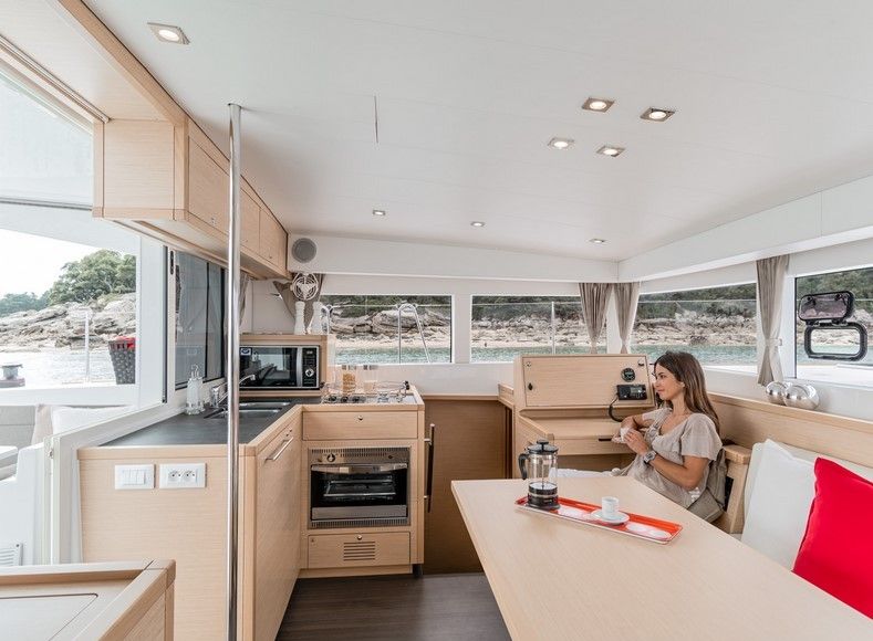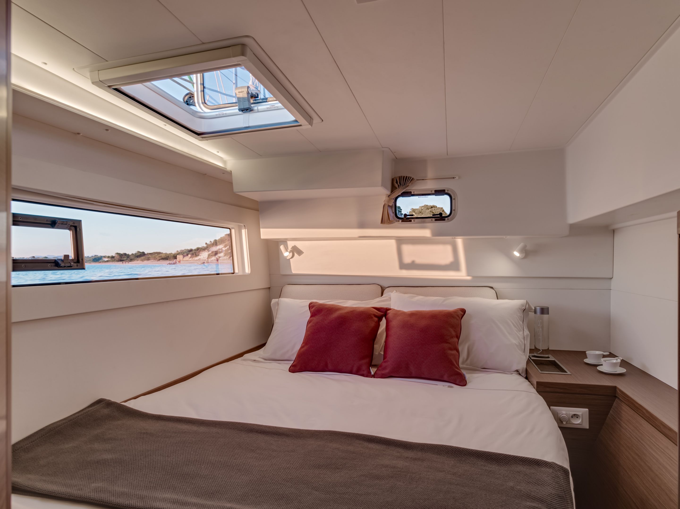 With her new visual identity, the 40 immediately stands out. While faithful to the image of Lagoon’s “DNA”, a new style is born: an individual, streamlined and accomplished design depicts her large portholes and panoramic view. This creates a refined and high-performance unit, emphasised by the chamfer running from the bow to the stern. A new generation Lagoon, recognisable at first sight.